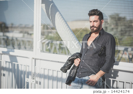 young handsome attractive bearded model man