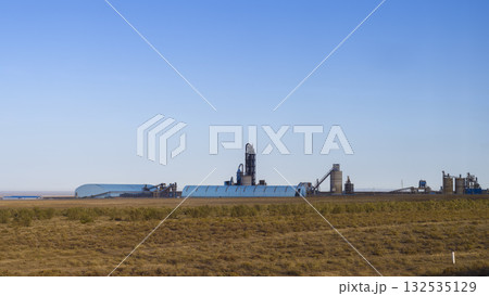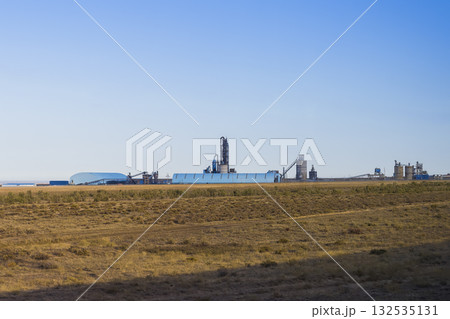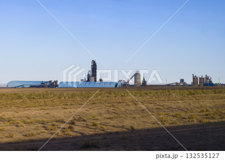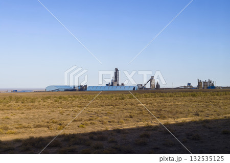 カザフスタンの広大な草原に建つセメント工場 Khantau, Jambyl, Kazakhstan