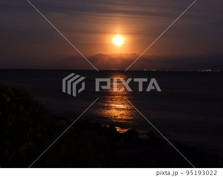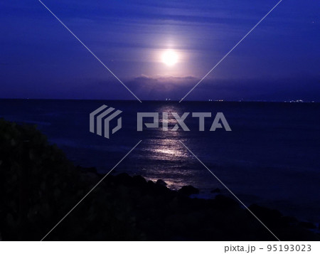 満月の日のムーンロード 神無月の月あかりのみち凪のはま
