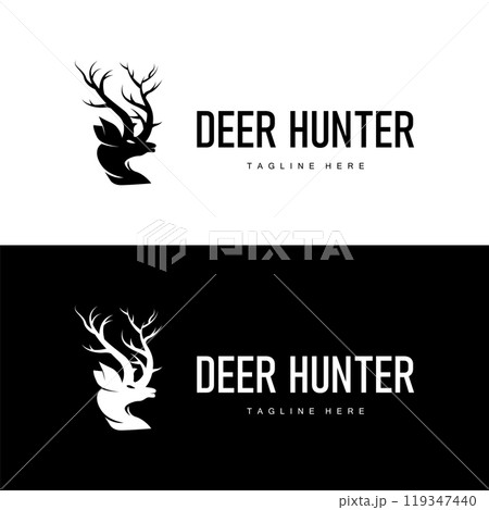 simple black silhouette deer logo vintage design deer forest animal hunter