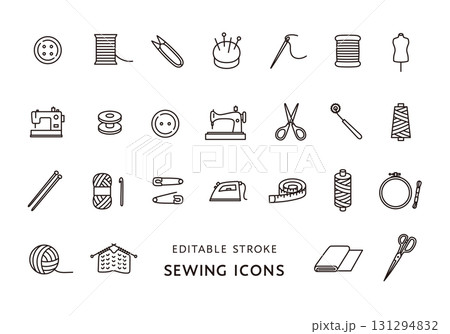 裁縫・手芸にまつわるアイコンセット(モノクロ)