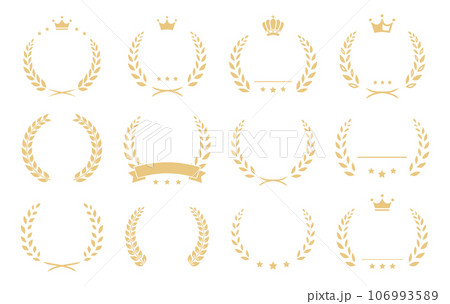 ゴールド リース アワード フレーム アイコンセット ベクターイラスト