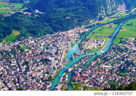初夏のヨーロッパ・アルプス ハーダークルム展望台から見た インターラーケン