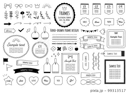 手書き風のサンバースト おしゃれなフレーム、見出し、ラベルのセット