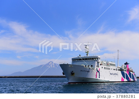 北海道 江差 江差沖を航行中のハートランドフェリーカランセ奥尻