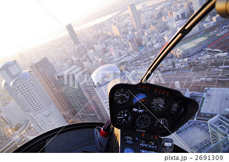 ヘリのコックピットから西梅田方面を望む