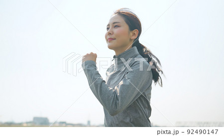 ランニングをする若い女性