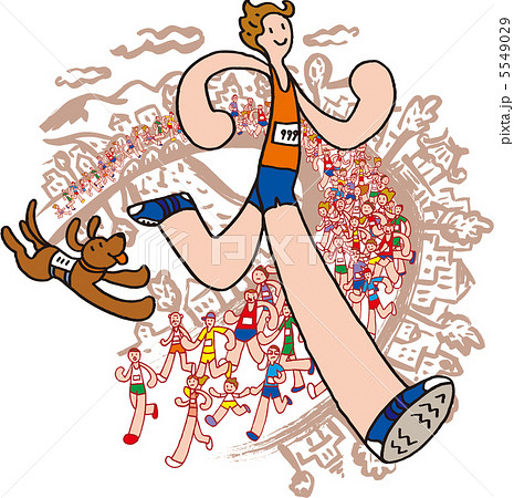 イラスト素材 陸上競技選手 マラソンランナー 男女混合