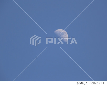 白い半月 昼間の空