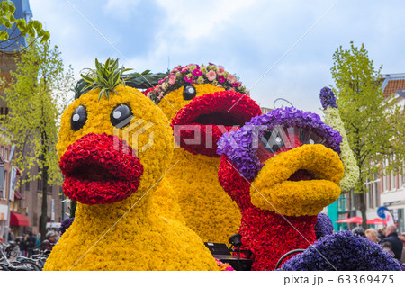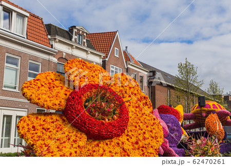 Statue made of tulips on flowers parade in Haarlem Netherlands