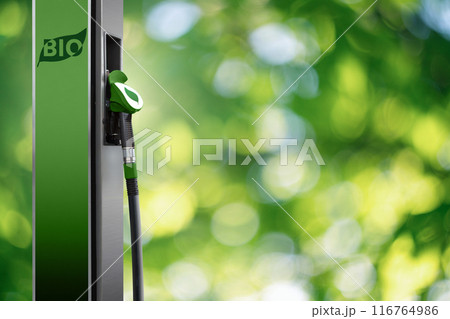 Biofuel filling station on a green background
