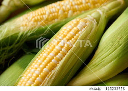 栄養満点、甘くて美味しい採りたてのとうもろこし スイートコーン