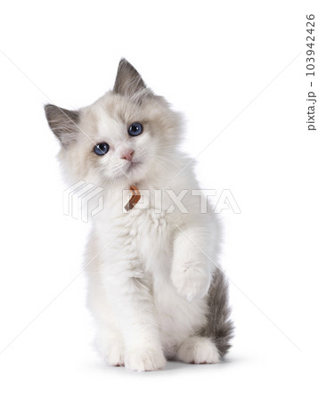上を向いて歩くバイカラーのラグドール ペット・動物の手描き水彩イラスト素材