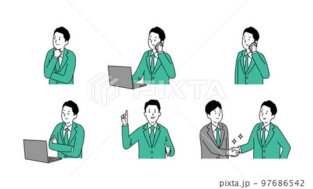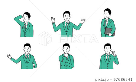 見た目の若い中年男性のいろいろなイラスト3、ベクター