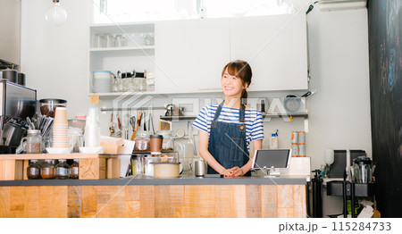 バッシングする女性カフェスタッフ