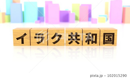 イラク共和国という国名が印字された木製ブロック
