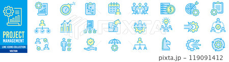 Project management icon collection. Editable strok