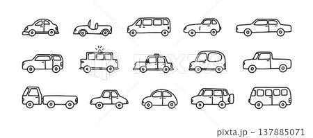 シンプルでかわいい日本の車イラストセット(乗用車・バス・パトカーなど)