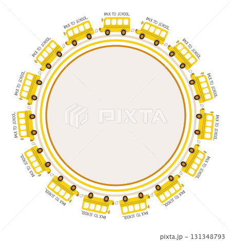 Wreath of cute yellow school buses, suitable for postcards, print for school templates, invitations