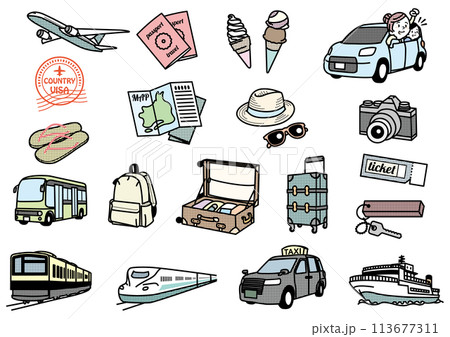 travel icon set illustration vector hand drawn isolated on white background line art.