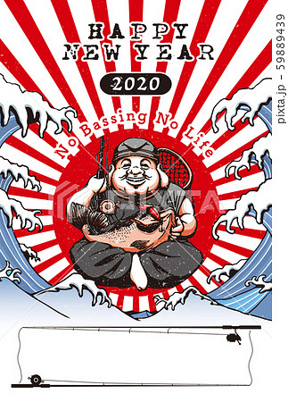 2020年賀状「バスフィシングの神様」ハッピーニューイヤー 日本語添え書き付き