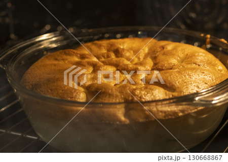 Close up shot of the baked pie in the oven. Food