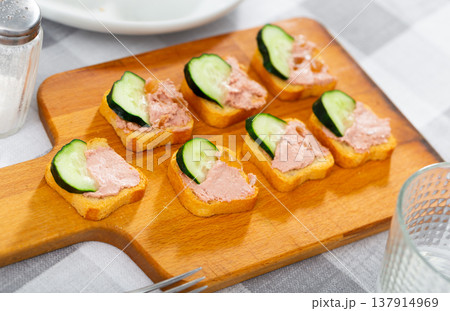 Sandwich with pate and cucumber slice