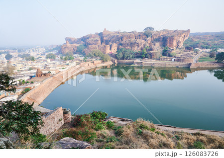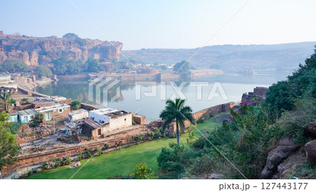 バダミのケーブ・テンプルから見たアガスティア湖とバダミフォート