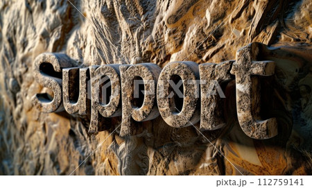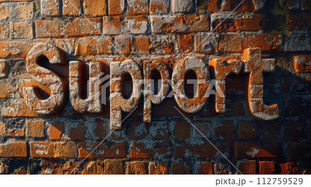 AI-generated content. Ancient Brick Support concept creative horizontal art poster. The Word Support made in textured lettering. Horizontal Illustration. Ai Generated Help and Assistance Symbol.