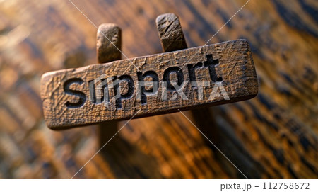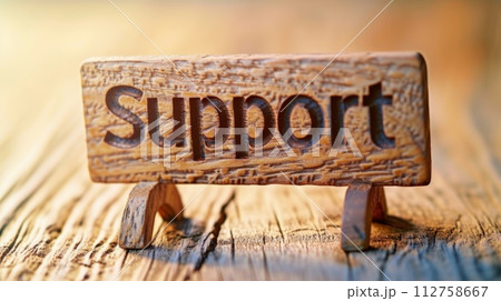 AI-generated content. Wooden Rosewood Support concept creative horizontal art poster. The Word Support made in textured lettering. Horizontal Illustration. Ai Generated Help and Assistance Symbol.