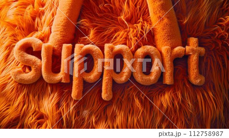 AI-generated content. Orange Fur Support concept creative horizontal art poster. The Word Support made in textured lettering. Horizontal Illustration. Ai Generated Help and Assistance Symbol.