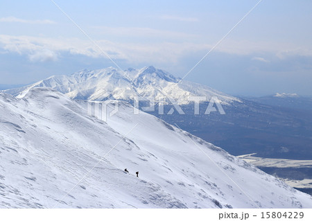 北海道 海別岳バックカントリースノーボード スノーボーダーと斜里岳