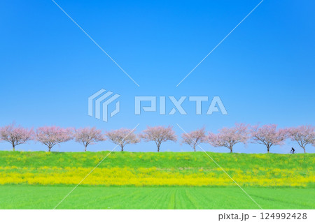春風にゆれる思川桜と青空の風景