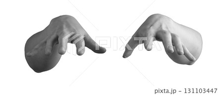hands positioned palm-down with fingers slightly curved, as if playing a piano, holding an invisible