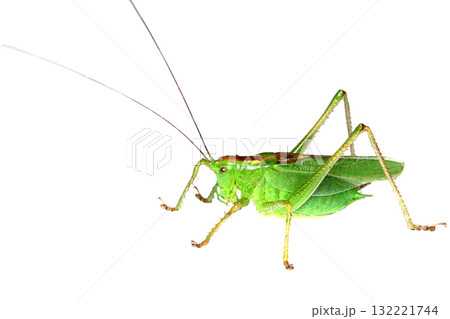 白い背景のキリギリス