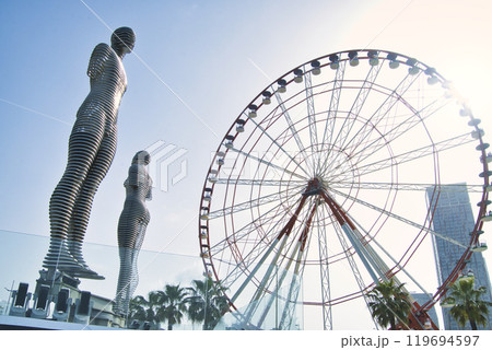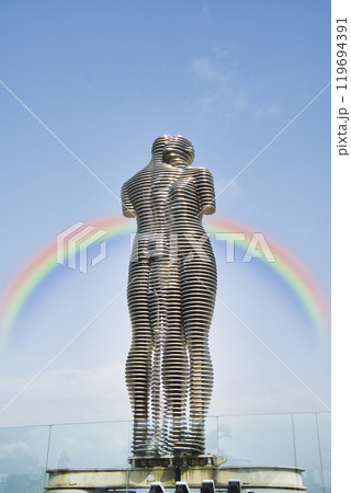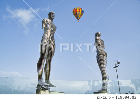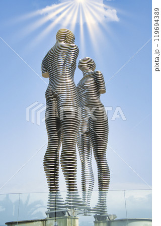 Art object in Batumi. Sculptures of a couple in love moving towards each other