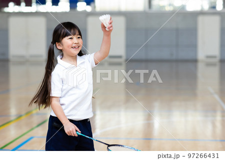 バドミントン ラケットを持つ女子中学生