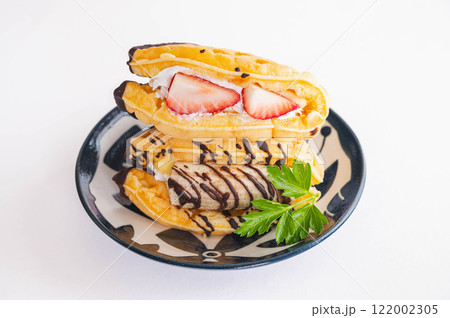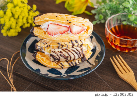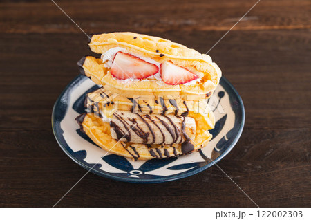 バナナとイチゴのワッフルの画像素材(写真・イラスト) 1ページ目