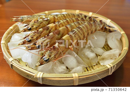 食材としての海老、バナメイエビ、バナメイえび、未加熱未調理。
