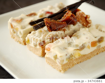 ドライフルーツのレアチーズバー 黒背景 (横位置)