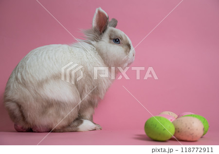 Easter bunny rabbits with baby chicks and Easter eggs, Welcome spring season