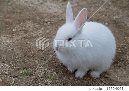 えさをもらうのを待っている人馴れした可愛いうさぎ