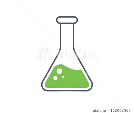 Simple, clean illustration of an Erlenmeyer flask containing a bright green liquid. Perfect for science, chemistry, laboratory, or educational projects. Use as an icon, symbol, or graphic element.