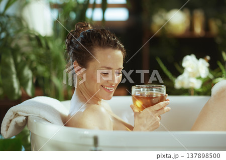 Contented Woman Enjoying a Soothing Bath