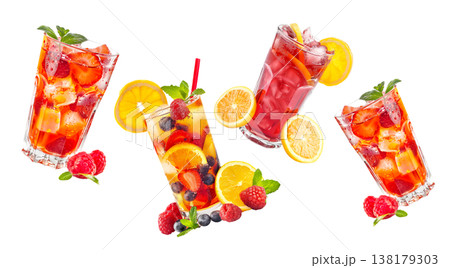 Savor a refreshing iced raspberry beverage with fruit and mint under the warm summer sun