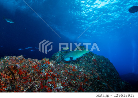 沖縄県慶良間諸島嘉比島の素晴らしいサンゴ礁と美しく大きなバラハタ他