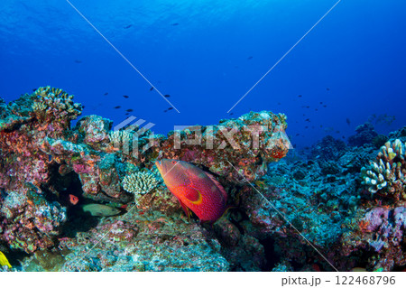 素晴らしいサンゴ礁の美しいバラハタ(ハタ科)他@嘉比島 沖縄県島尻郡座間味村座間味島から渡し船で渡