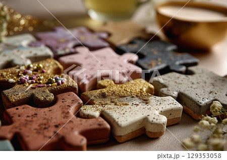 Cubist Abstract Art on Wooden Surface Colorful Egg Shapes Indoor Artistic Viewpoint