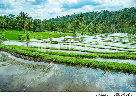 インドネシア バリ島 ジャティルイのライステラス 水を張った棚田