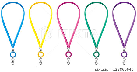 リール付きネックストラップのベクターイラスト素材ビビットカラバリセット
